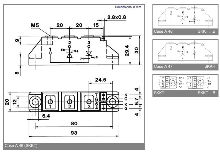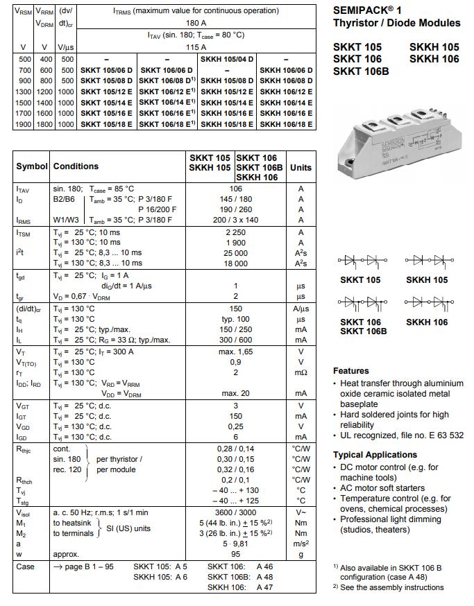 双闸流晶体管模块,SKKT SEMIPACK 1 系列,Semikron