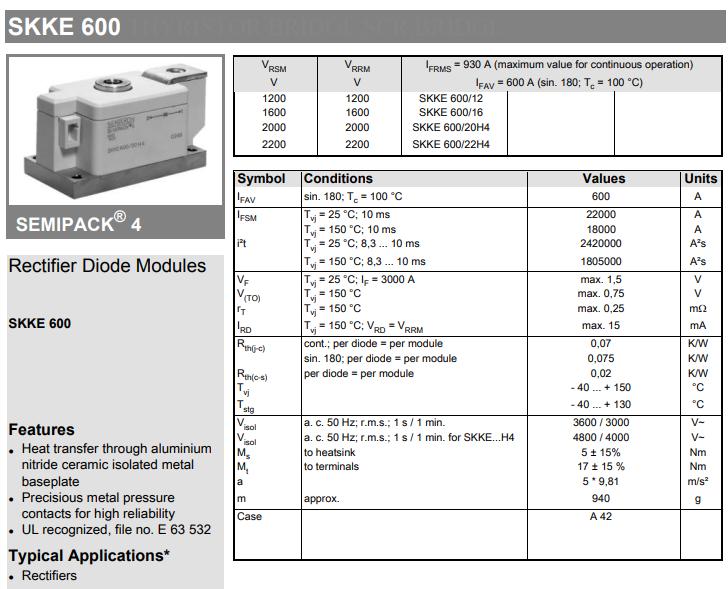 SKKE600,SKKE600可控硅,SKKE600/16E,SKKE600/16E模块,