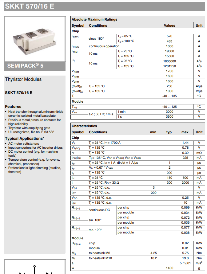 SKKT570,SKKT570可控硅,SKKT570/16E,SKKT570/16E双可控硅模块,