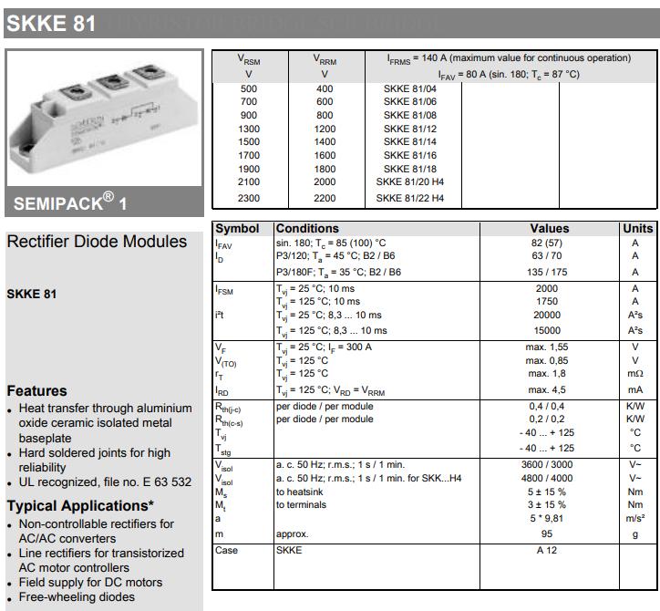 SKKE81,SKKE81可控硅,SKKE81/16E,SKKE81/16E模块,